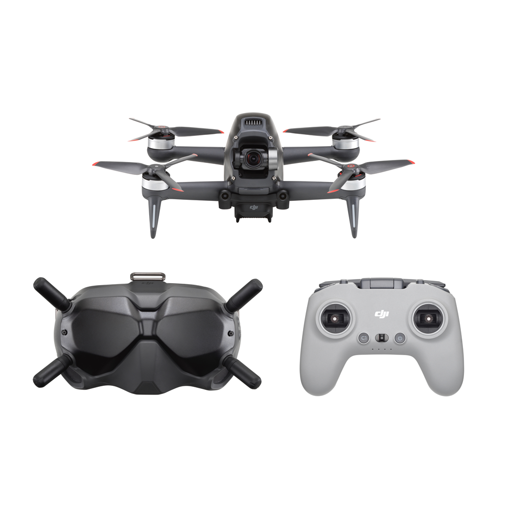 Sleek and aerodynamic, the DJI FPV aircraft delivers powerful propulsion, battery life, and wind resistance, making this system as capable as it is visually stunning. DJI FPV stands out in more ways than one. Sporting front LEDs and aircraft arm lights with customizable-color, DJI FPV allows pilots to make their aircraft as unique as they are.