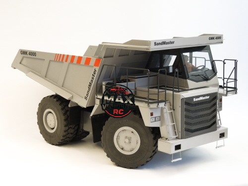 Loading... Please wait...The SandMaster GMK4000, Off-Road Dump Truck Kit 1:14,5 Made in Germany by tematik. Based on 40k mining dump trucks used for opencast mining worldwide, this superbly detailed truck looks imposing, yet is able to drive along other models with a scale of 1:14 or 1:16. With two planetary gear motors in the rear the SandMaster GMK4000 masters any and all rough terrain. The rims run on 55mm thin section bearing with a rubber seal. The spindle drive comes pre-assembled and wired with motor. The two gear motors are included as well.